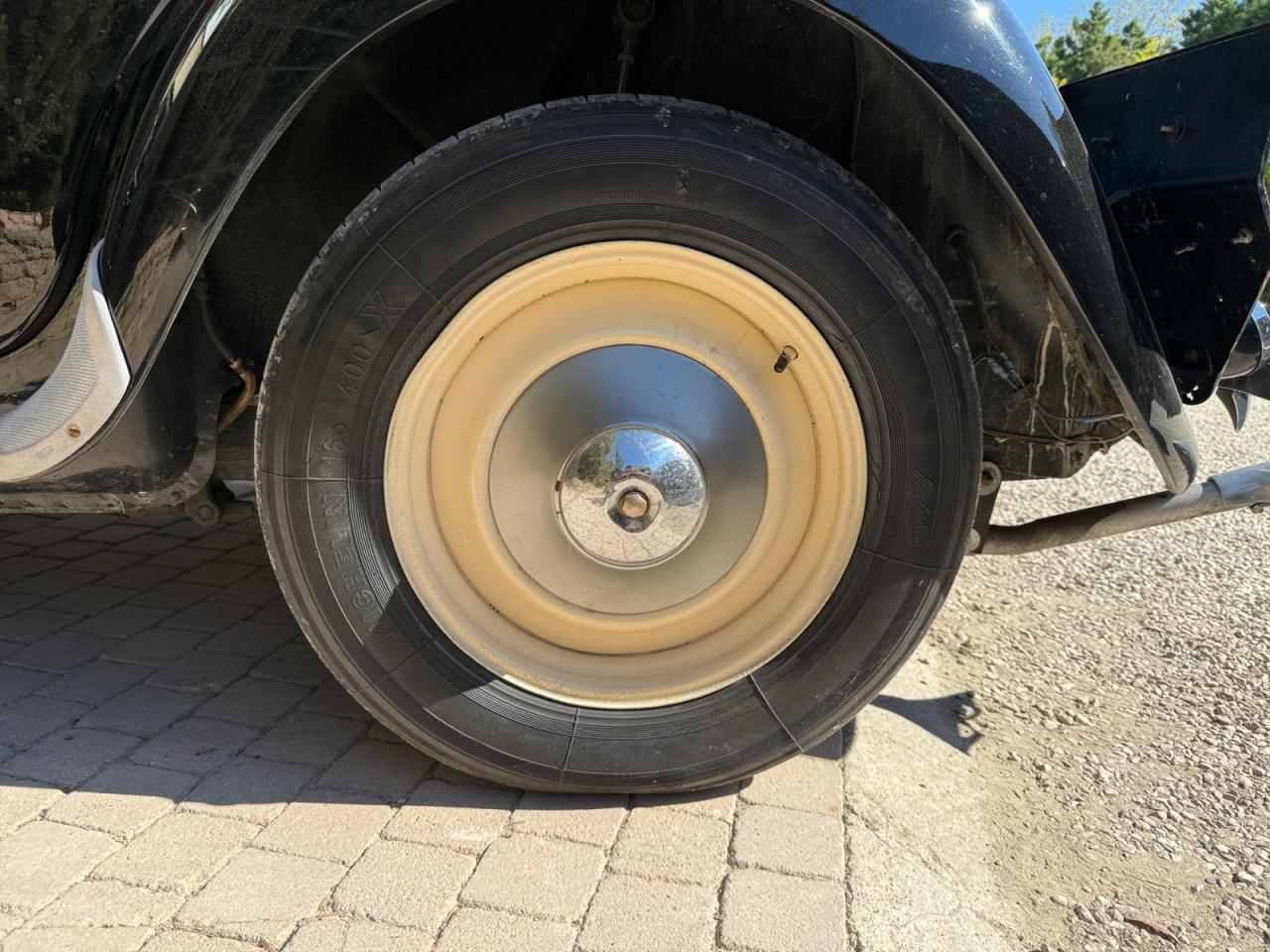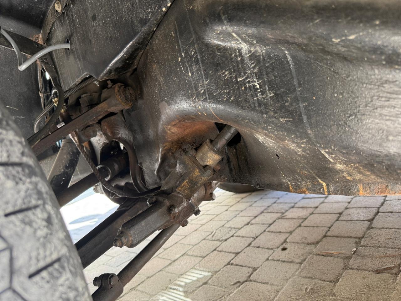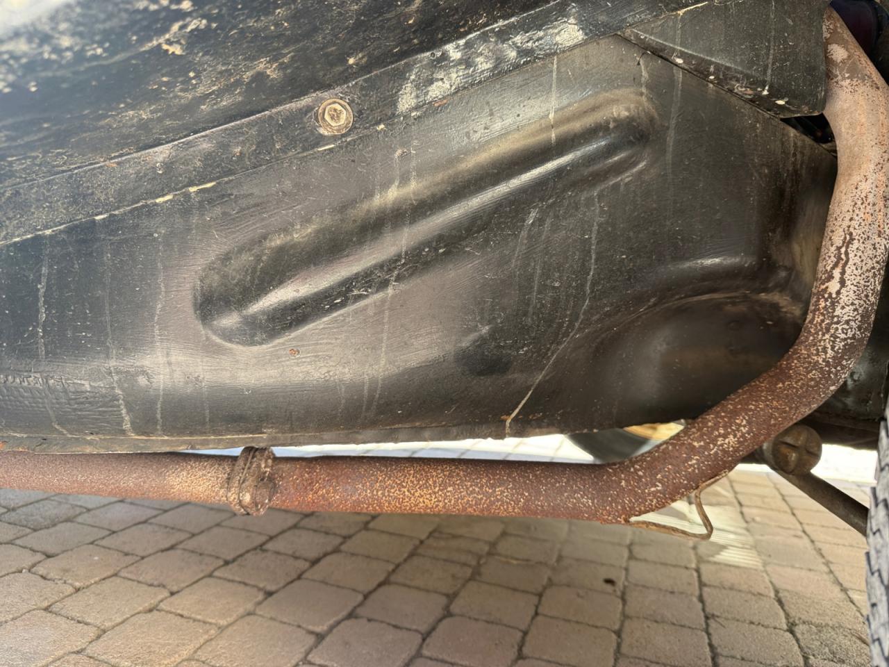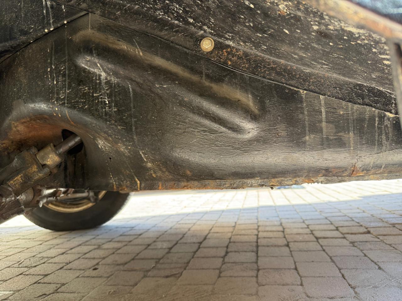 Les jambonneaux ont été traités contre la rouille et le châssis est sain; seuls quelques points de rouille superficiels sont présents sur les portières. La carrosserie nécessiterait un peu de soin pour retrouver son lustre d’antan.