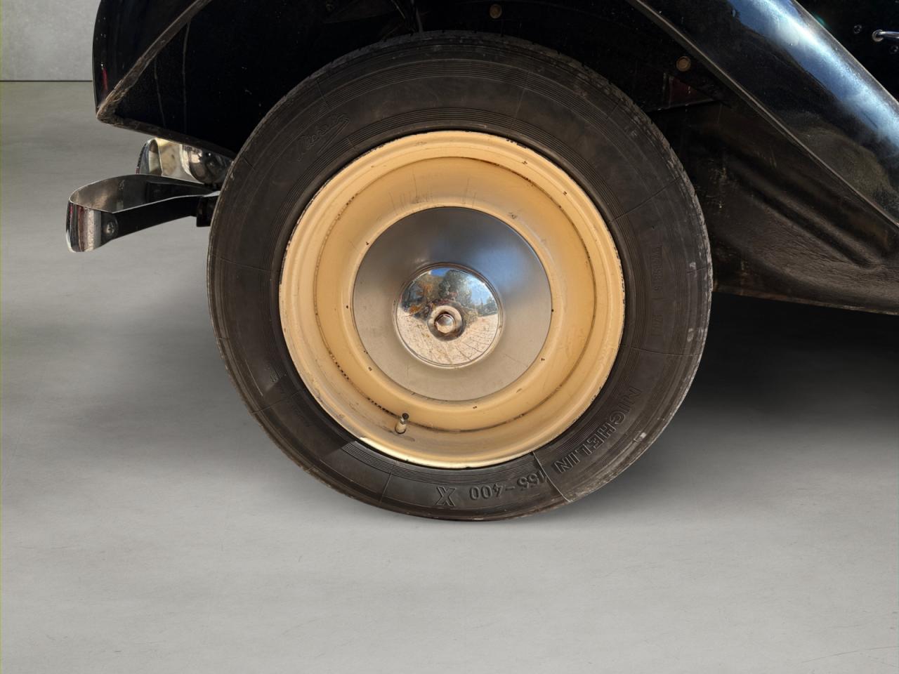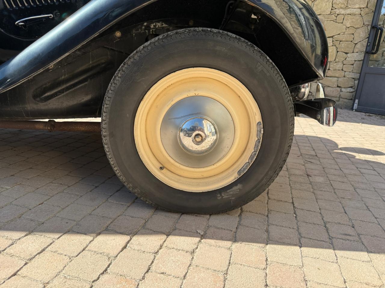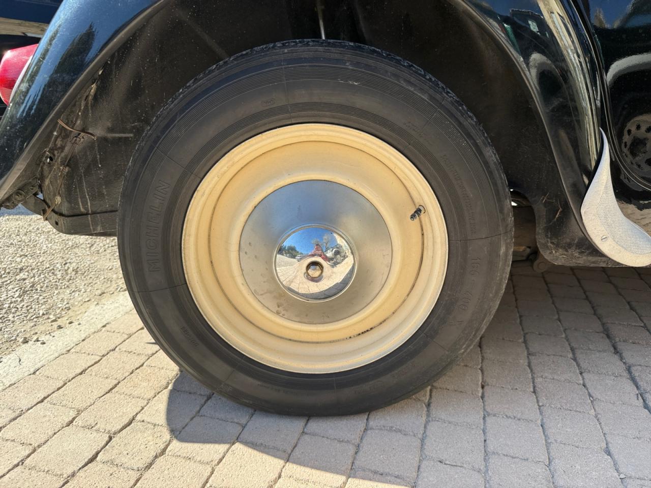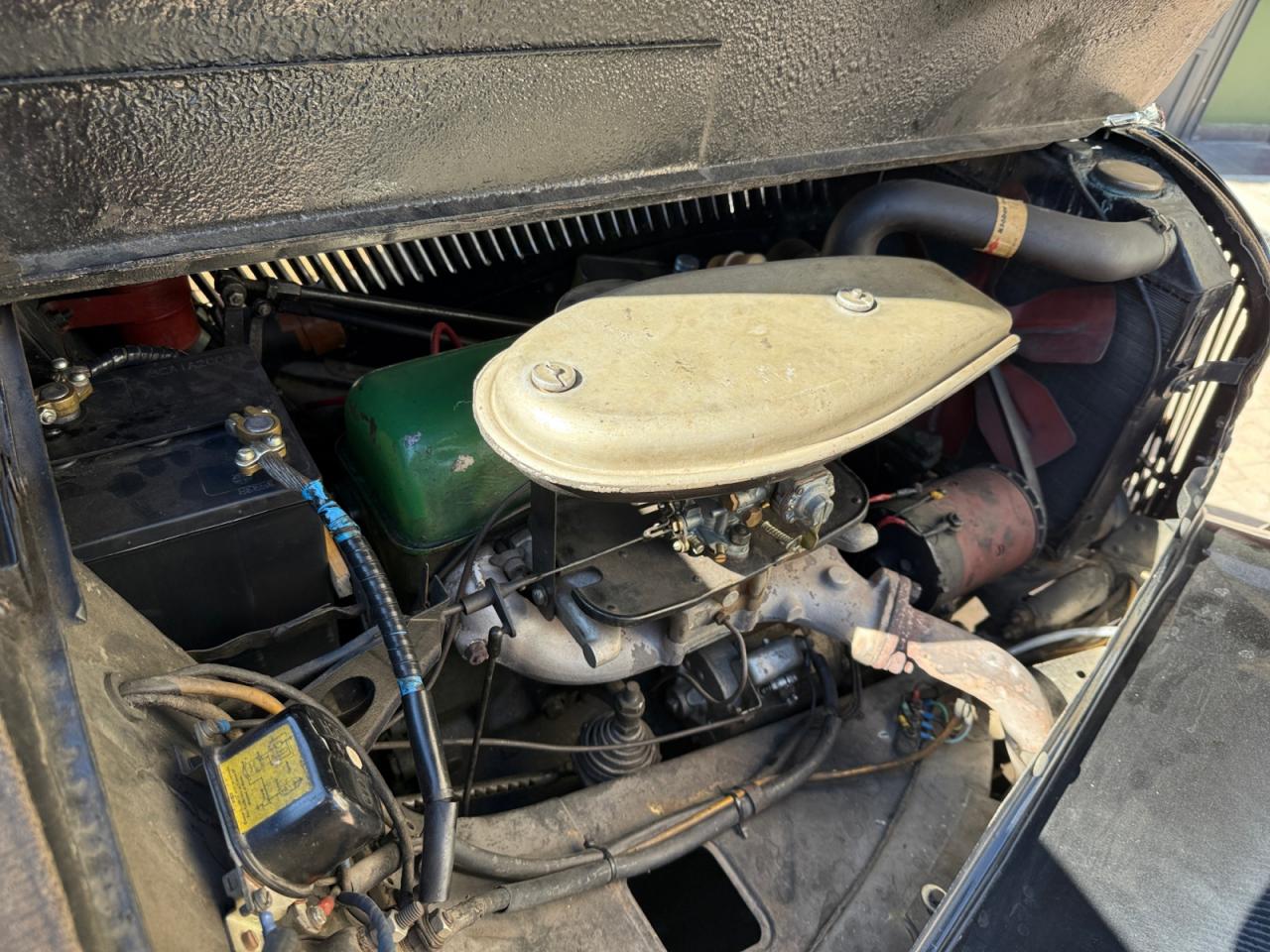 Les jambonneaux ont été traités contre la rouille et le châssis est sain; seuls quelques points de rouille superficiels sont présents sur les portières. La carrosserie nécessiterait un peu de soin pour retrouver son lustre d’antan.