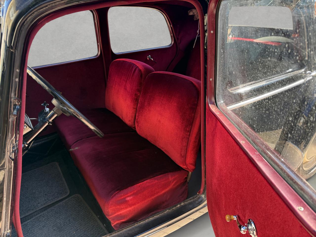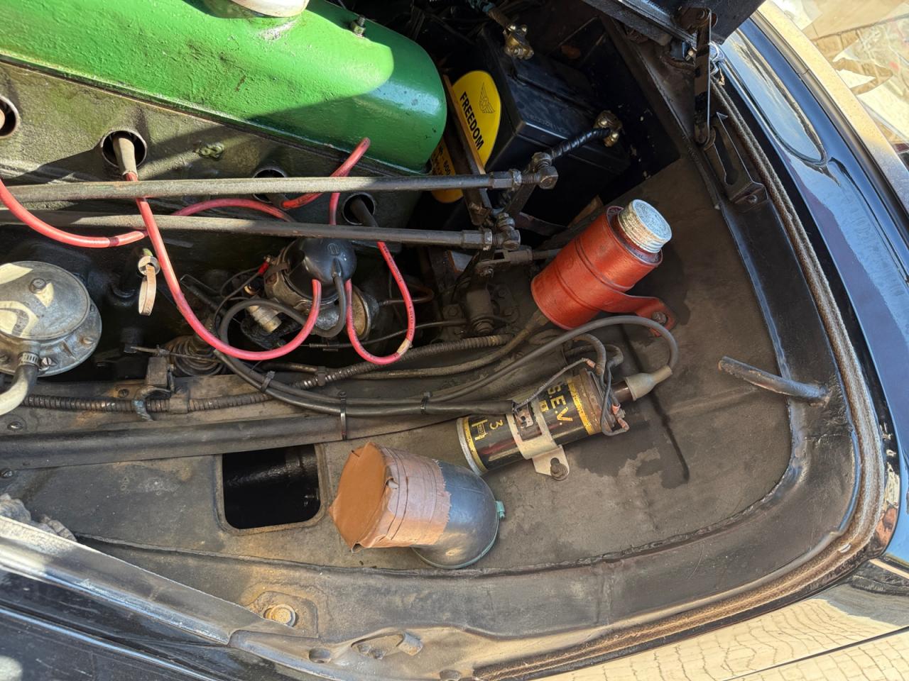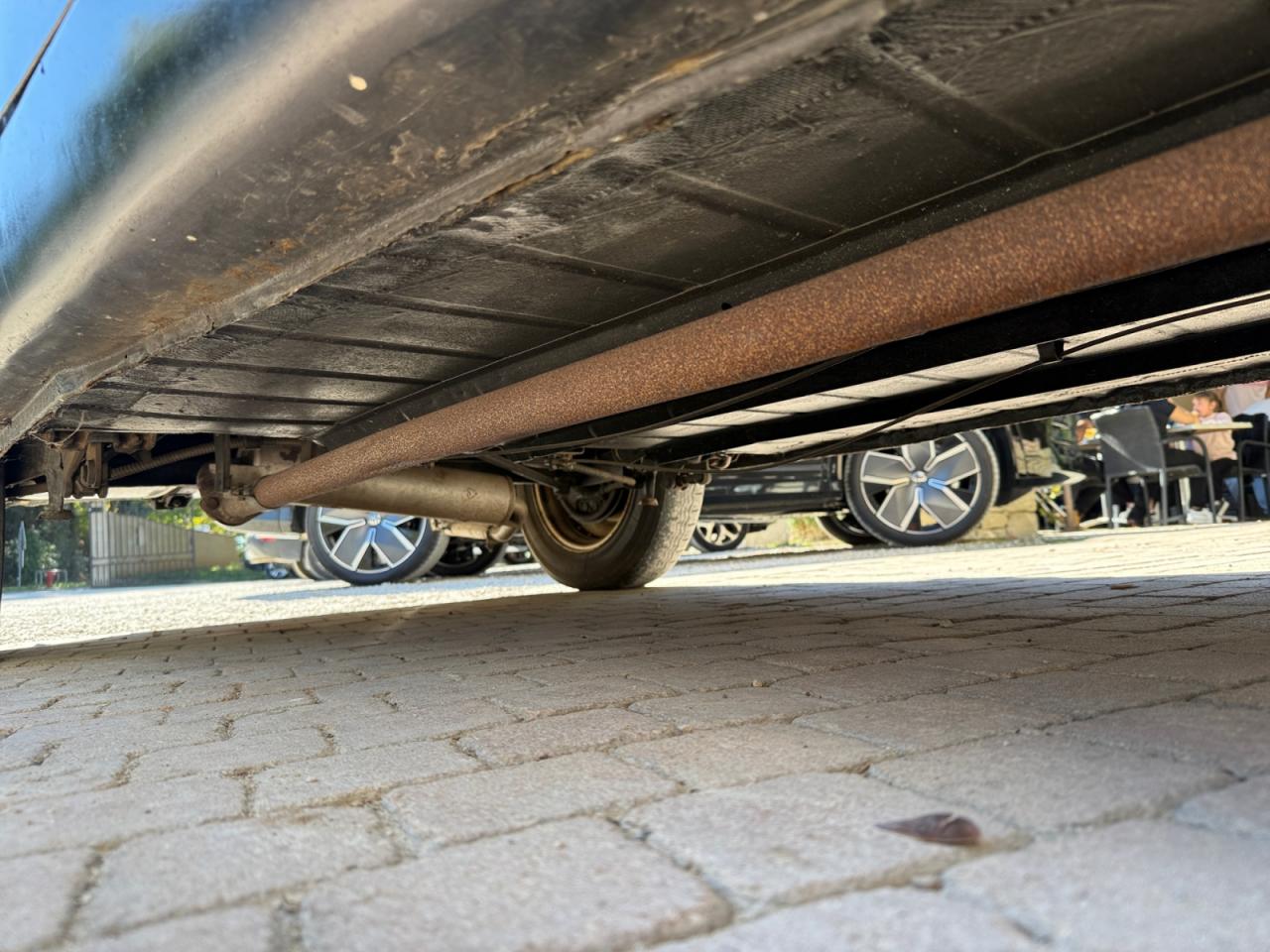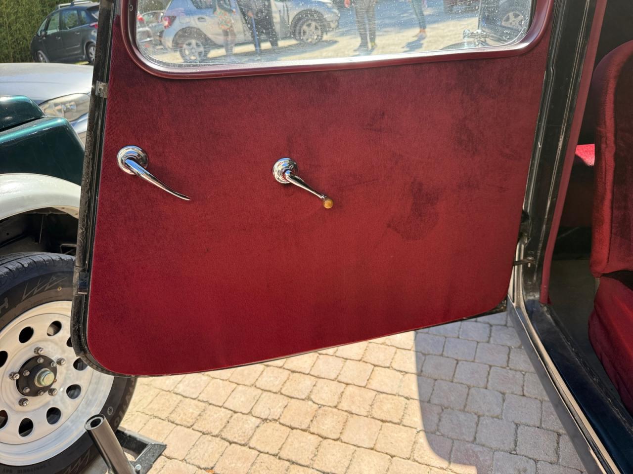 Les jambonneaux ont été traités contre la rouille et le châssis est sain; seuls quelques points de rouille superficiels sont présents sur les portières. La carrosserie nécessiterait un peu de soin pour retrouver son lustre d’antan.