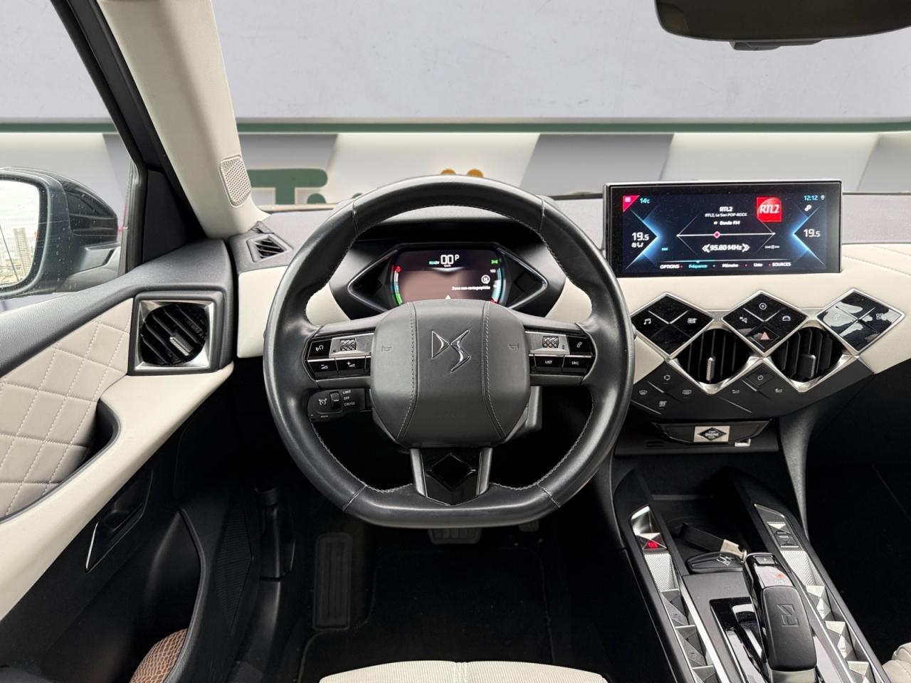 Découvrez cette DS 3 Crossback E-Tense Grand Chic, un SUV compact 100 % électrique alliant élégance, technologie et confort haut de gamme. Grâce à sa motorisation électrique silencieuse et réactive, elle offre une conduite fluide et agréable aussi bien en ville que sur route. Sa finition Grand Chic, la plus haut de gamme, garantit un excellent niveau d’équipements et de sécurité.